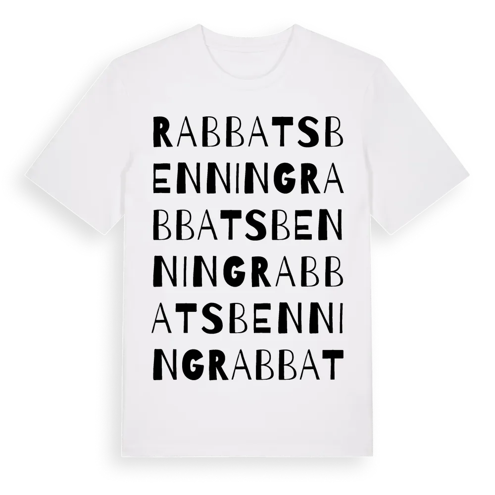 Rabbatsbenning ordlek t-shirt är inspirerad av byn Rabbatsbenning i Västmanlands län, Sverige. Tröjan är designad för dig som har en speciell koppling till platsen – oavsett om du bor här, har rötterna här eller bara älskar Rabbatsbenning.