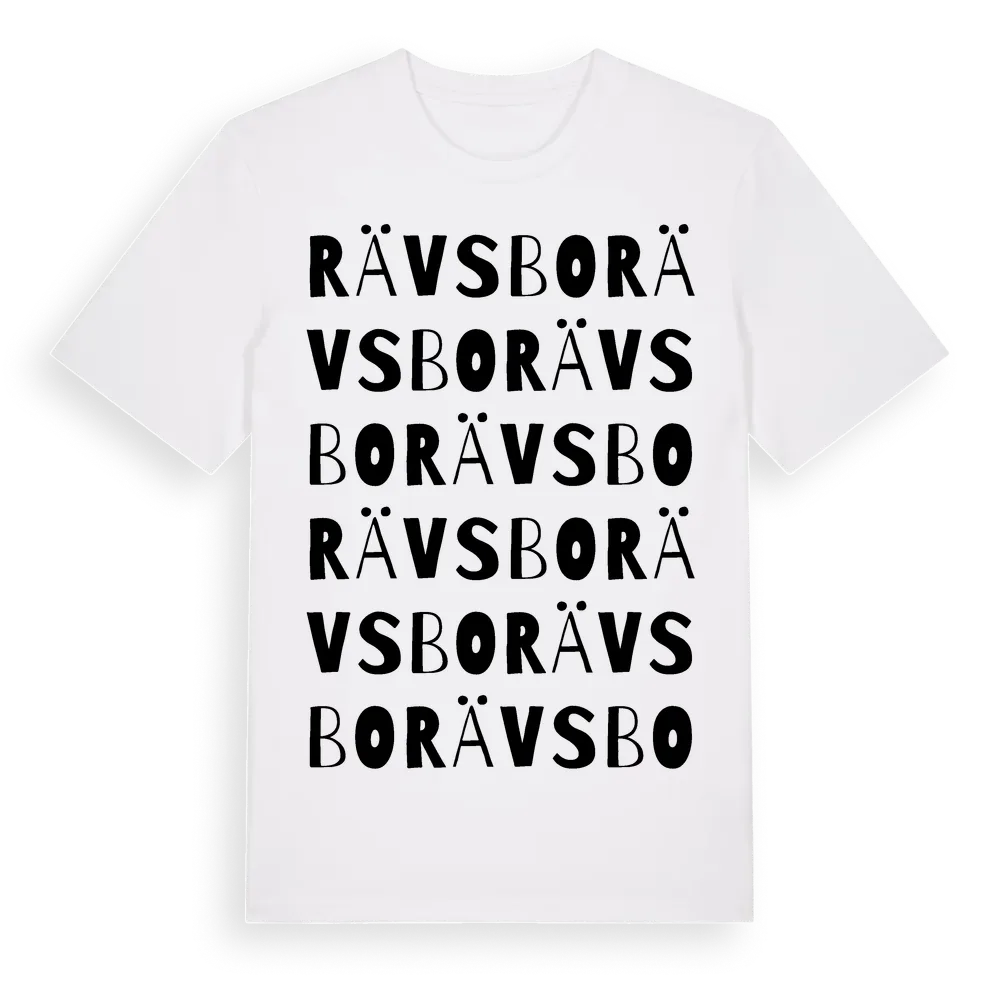 Rävsbo ordlek t-shirt är inspirerad av Rävsbo i Västmanlands län, Sverige. Tröjan är designad för dig som har en speciell koppling till platsen – oavsett om du bor här, har rötterna här eller bara älskar Rävsbo.