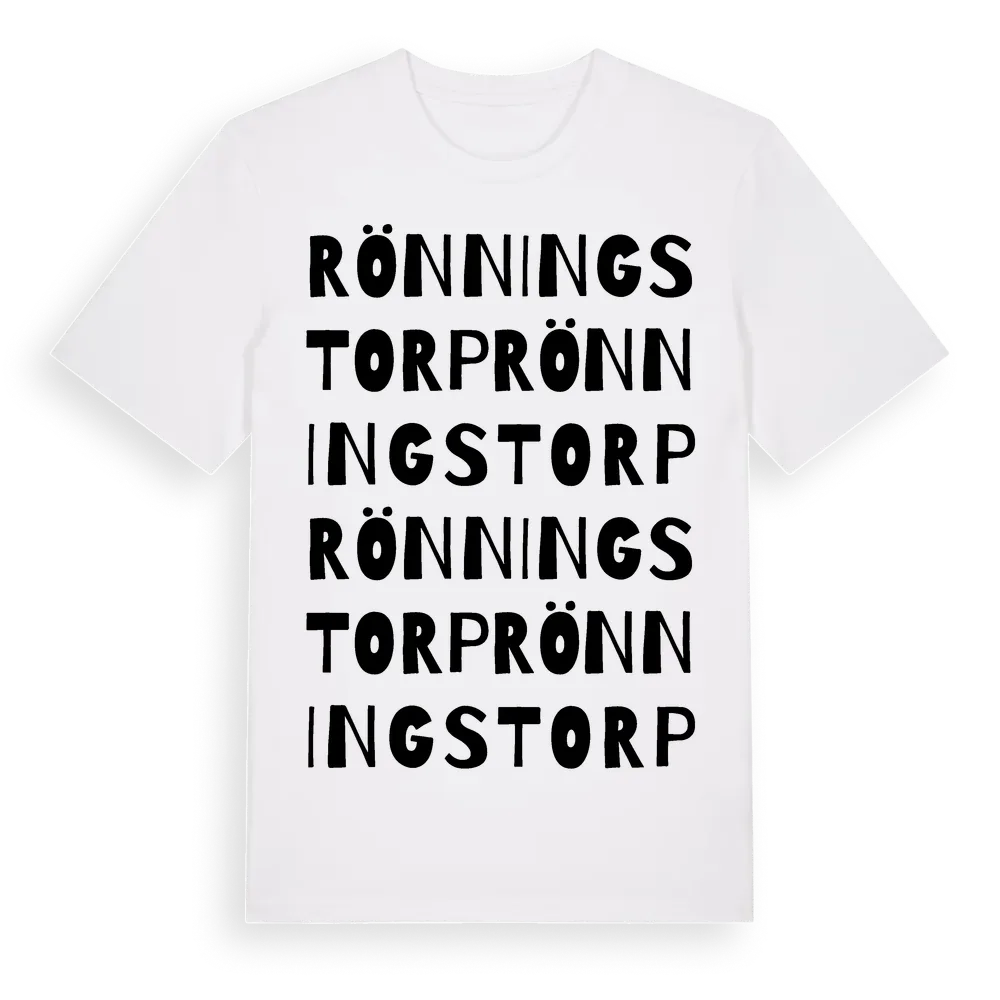 Rönningstorp ordlek t-shirt är inspirerad av Rönningstorp i Västmanlands län, Sverige. Tröjan är designad för dig som har en speciell koppling till platsen – oavsett om du bor här, har rötterna här eller bara älskar Rönningstorp.