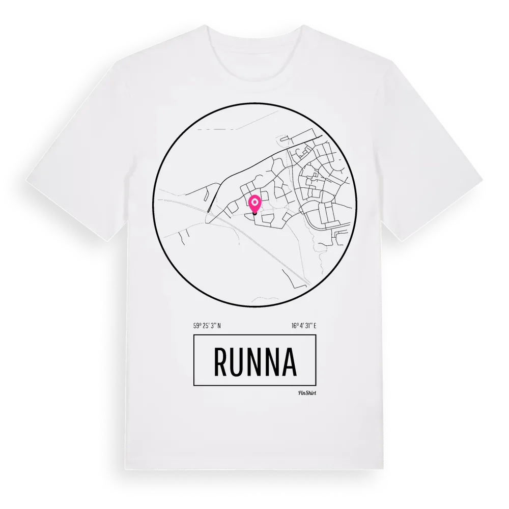Runna t-shirt är inspirerad av stadsdelen Runna i Västmanlands län, Sverige. Tröjan är designad för dig som har en speciell koppling till platsen – oavsett om du bor här, har rötterna här eller bara älskar Runna.