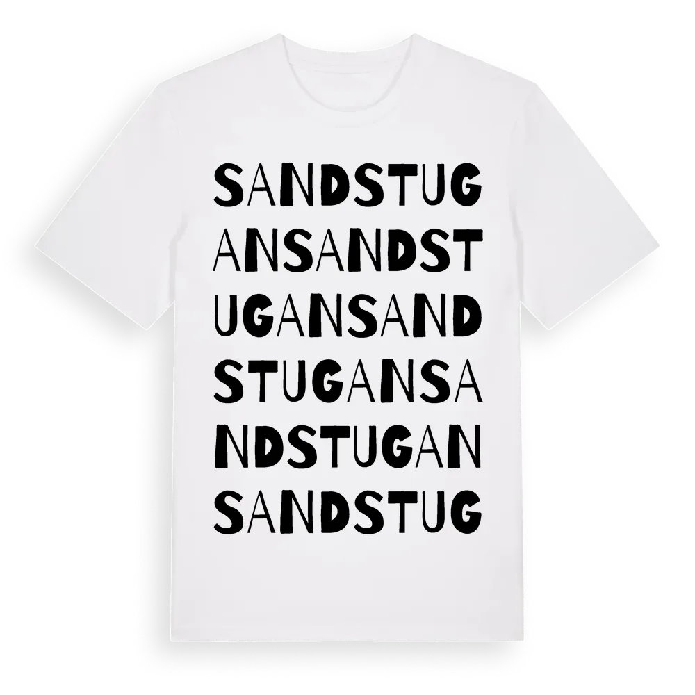 Sandstugan ordlek t-shirt är inspirerad av Sandstugan i Västmanlands län, Sverige. Tröjan är designad för dig som har en speciell koppling till platsen – oavsett om du bor här, har rötterna här eller bara älskar Sandstugan.
