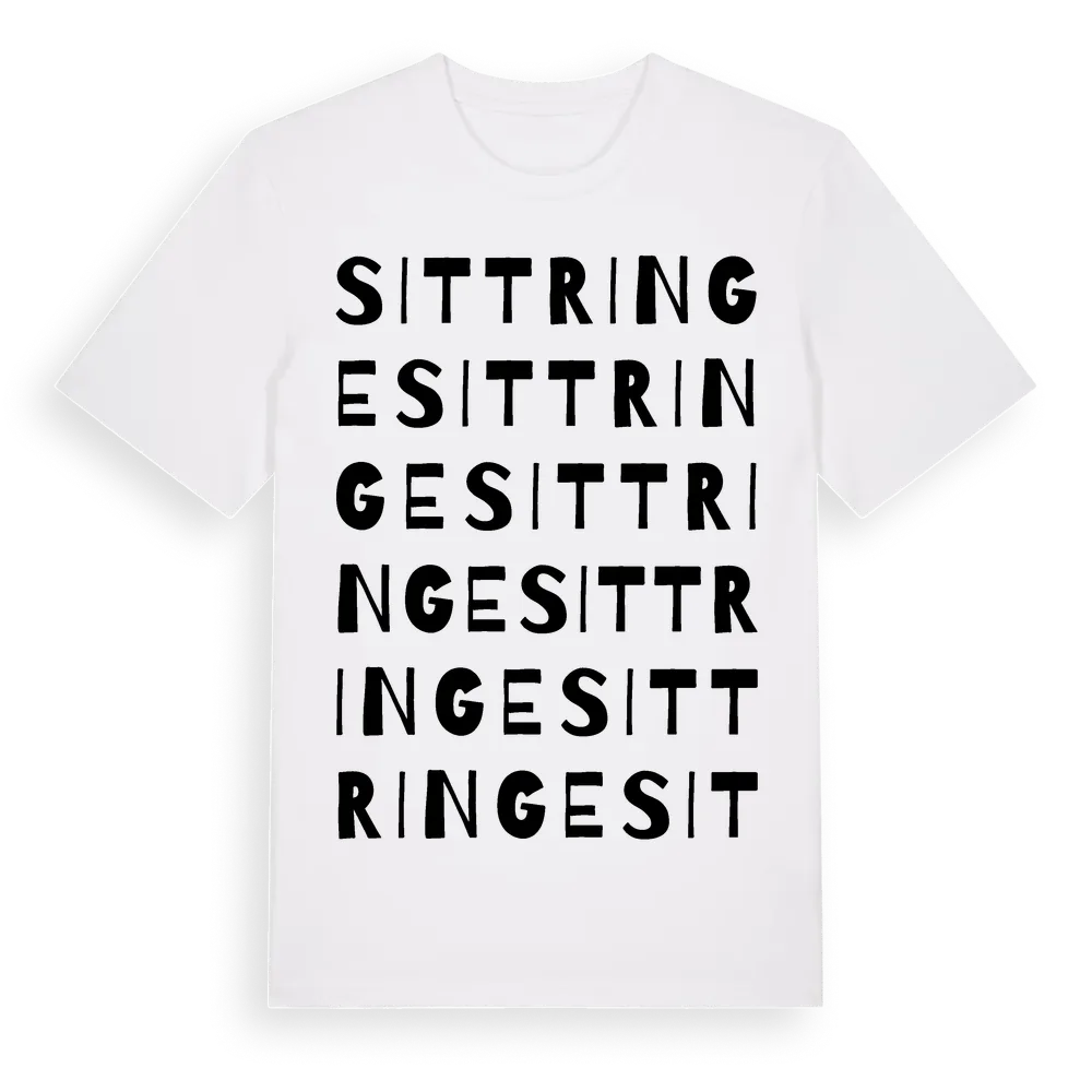 En ordlek byggd på Sittringes namn. Subtilt och klurig – ett motiv som bara de som verkligen känner platsen fullt ut förstår. Premium bomull, unisex – från Sittringe i Västmanlands län.