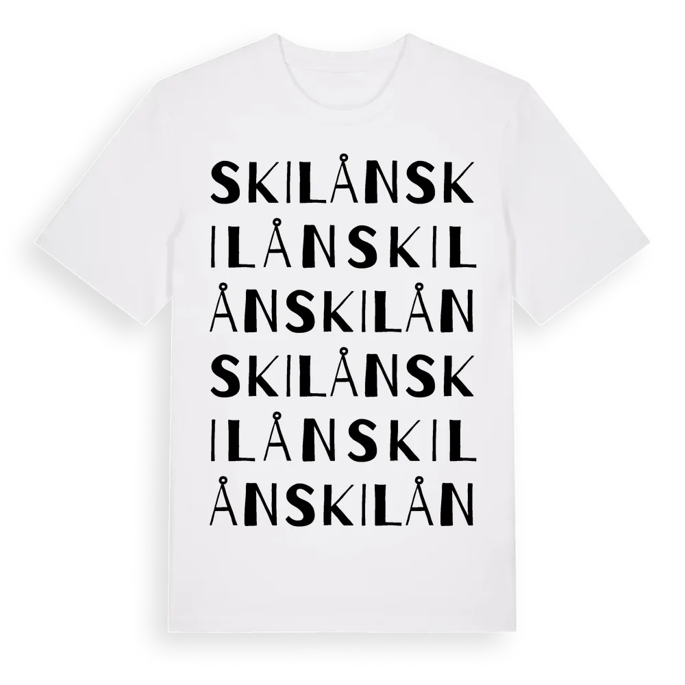 Skilån ordlek t-shirt är inspirerad av Skilån i Västmanlands län, Sverige. Tröjan är designad för dig som har en speciell koppling till platsen – oavsett om du bor här, har rötterna här eller bara älskar Skilån.