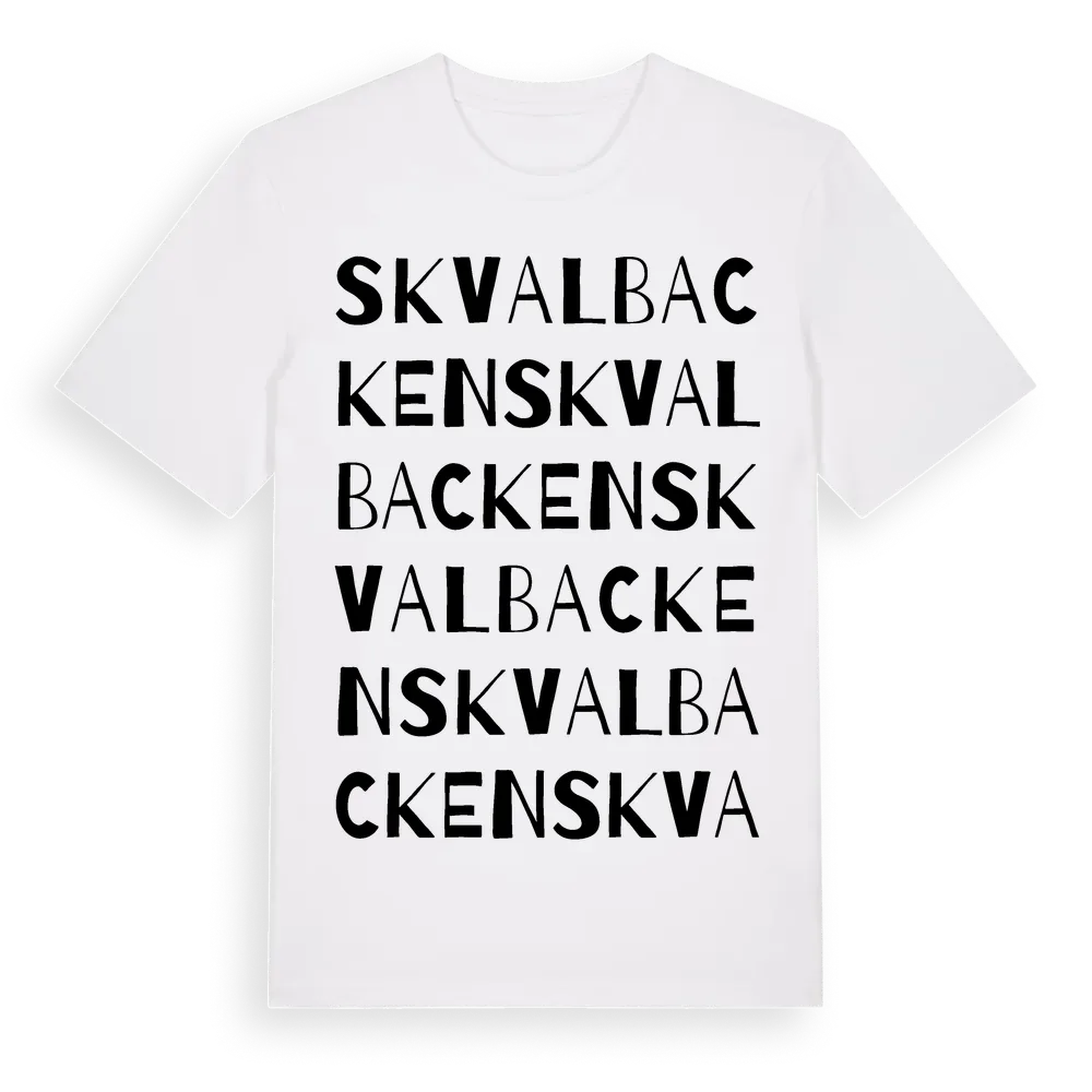 Skvalbacken ordlek t-shirt är inspirerad av byn Skvalbacken i Västmanlands län, Sverige. Tröjan är designad för dig som har en speciell koppling till platsen – oavsett om du bor här, har rötterna här eller bara älskar Skvalbacken.