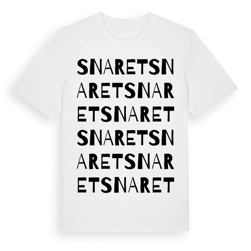 Snaret ordlek t-shirt är inspirerad av Snaret i Västmanlands län, Sverige. Tröjan är designad för dig som har en speciell koppling till platsen – oavsett om du bor här, har rötterna här eller bara älskar Snaret.