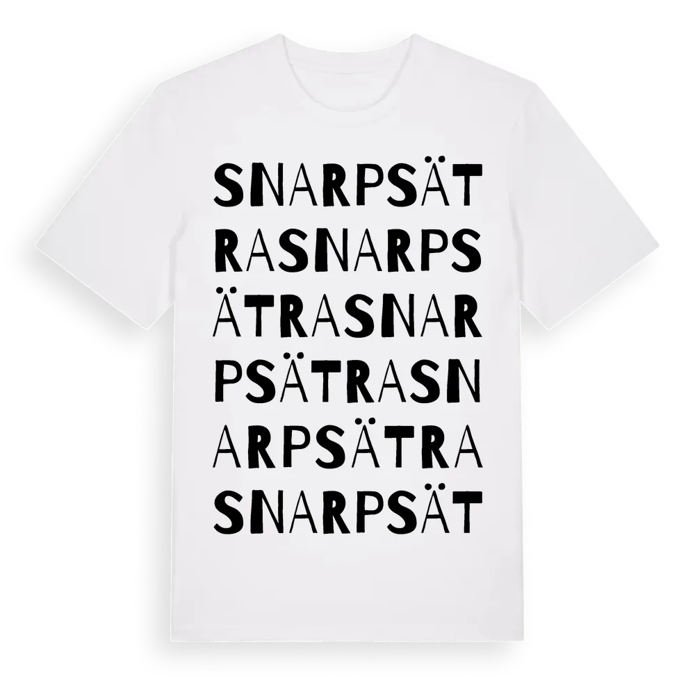 Snarpsätra ordlek t-shirt är inspirerad av byn Snarpsätra i Västmanlands län, Sverige. Tröjan är designad för dig som har en speciell koppling till platsen – oavsett om du bor här, har rötterna här eller bara älskar Snarpsätra.