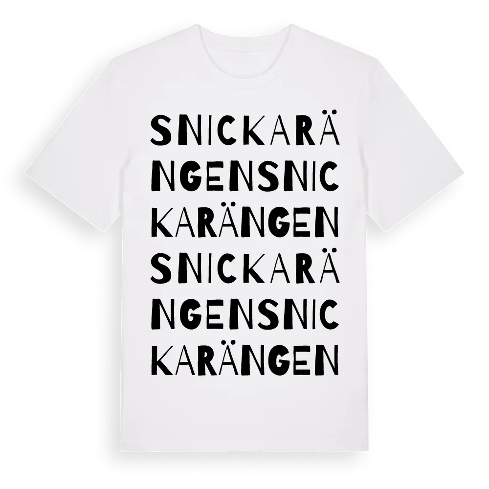 Snickarängen ordlek t-shirt är inspirerad av Snickarängen i Västmanlands län, Sverige. Tröjan är designad för dig som har en speciell koppling till platsen – oavsett om du bor här, har rötterna här eller bara älskar Snickarängen.