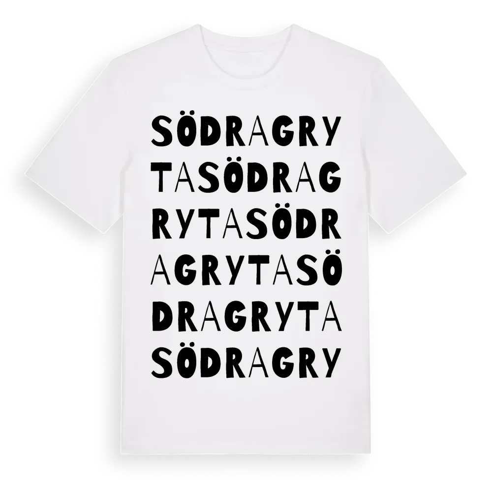 Södra Gryta ordlek t-shirt är inspirerad av stadsdelen Södra Gryta i Västmanlands län, Sverige. Tröjan är designad för dig som har en speciell koppling till platsen – oavsett om du bor här, har rötterna här eller bara älskar Södra Gryta.