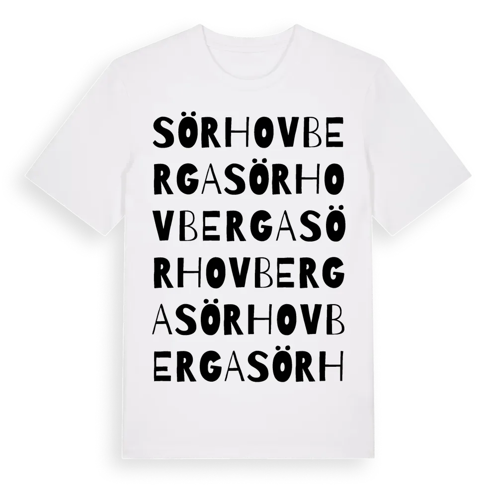 Sör Hovberga ordlek t-shirt är inspirerad av byn Sör Hovberga i Västmanlands län, Sverige. Tröjan är designad för dig som har en speciell koppling till platsen – oavsett om du bor här, har rötterna här eller bara älskar Sör Hovberga.