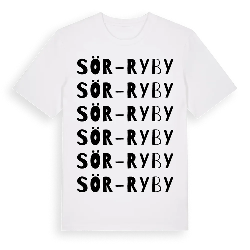 Sör-Ryby ordlek t-shirt är inspirerad av byn Sör-Ryby i Västmanlands län, Sverige. Tröjan är designad för dig som har en speciell koppling till platsen – oavsett om du bor här, har rötterna här eller bara älskar Sör-Ryby.