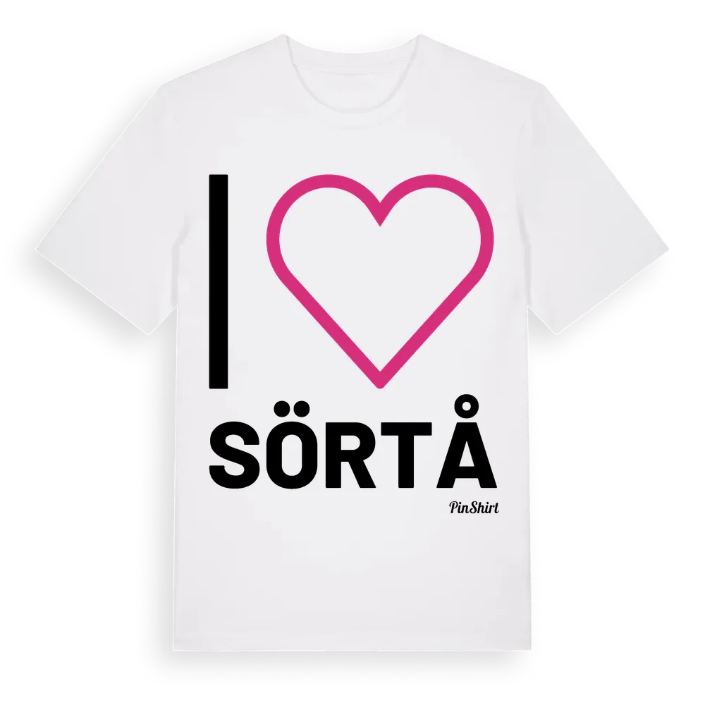 Det klassiska "I ❤ Sörtå"-motivet i stort format som täcker hela bröstet. För dig som vill visa kärleken till Sörtå på riktigt. Premium bomull, unisex – från byn Sörtå i Västmanlands län.