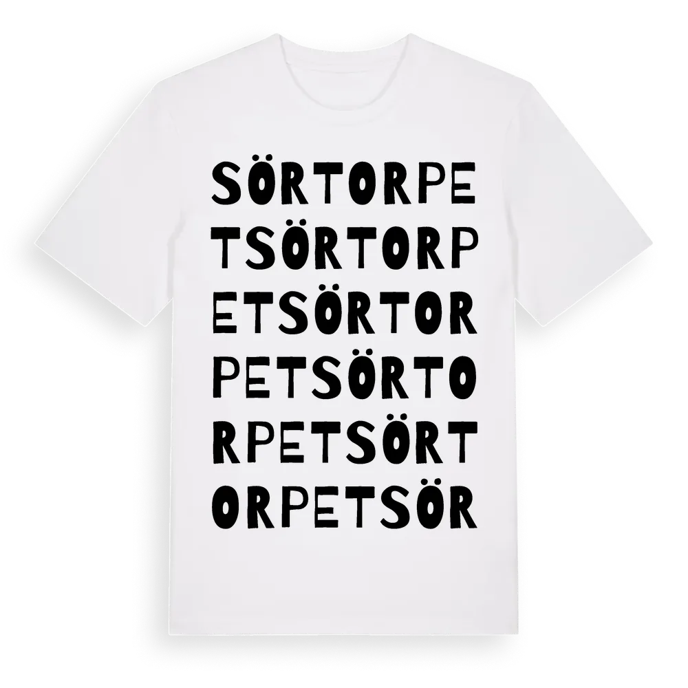 Sörtorpet ordlek t-shirt är inspirerad av Sörtorpet i Västmanlands län, Sverige. Tröjan är designad för dig som har en speciell koppling till platsen – oavsett om du bor här, har rötterna här eller bara älskar Sörtorpet.