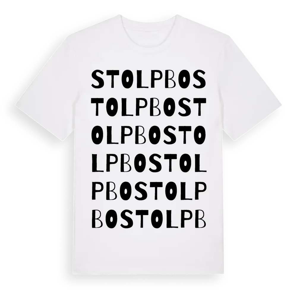 Stolpbo ordlek t-shirt är inspirerad av byn Stolpbo i Västmanlands län, Sverige. Tröjan är designad för dig som har en speciell koppling till platsen – oavsett om du bor här, har rötterna här eller bara älskar Stolpbo.