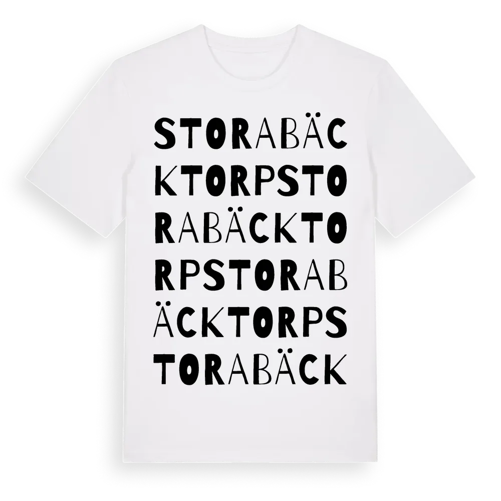 Stora Bäcktorp ordlek t-shirt är inspirerad av Stora Bäcktorp i Västmanlands län, Sverige. Tröjan är designad för dig som har en speciell koppling till platsen – oavsett om du bor här, har rötterna här eller bara älskar Stora Bäcktorp.