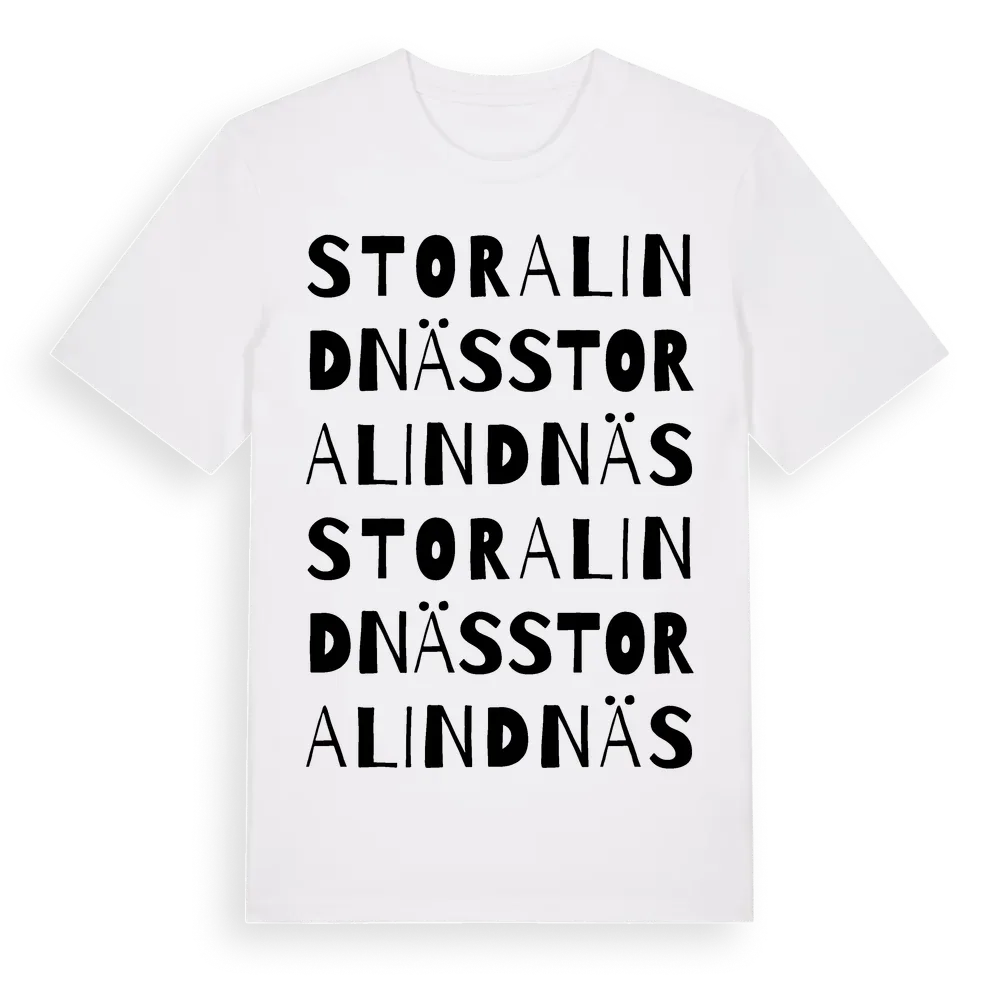 Stora Lindnäs ordlek t-shirt är inspirerad av Stora Lindnäs i Västmanlands län, Sverige. Tröjan är designad för dig som har en speciell koppling till platsen – oavsett om du bor här, har rötterna här eller bara älskar Stora Lindnäs.
