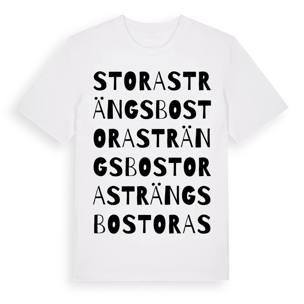 Stora Strängsbo ordlek t-shirt är inspirerad av Stora Strängsbo i Västmanlands län, Sverige. Tröjan är designad för dig som har en speciell koppling till platsen – oavsett om du bor här, har rötterna här eller bara älskar Stora Strängsbo.