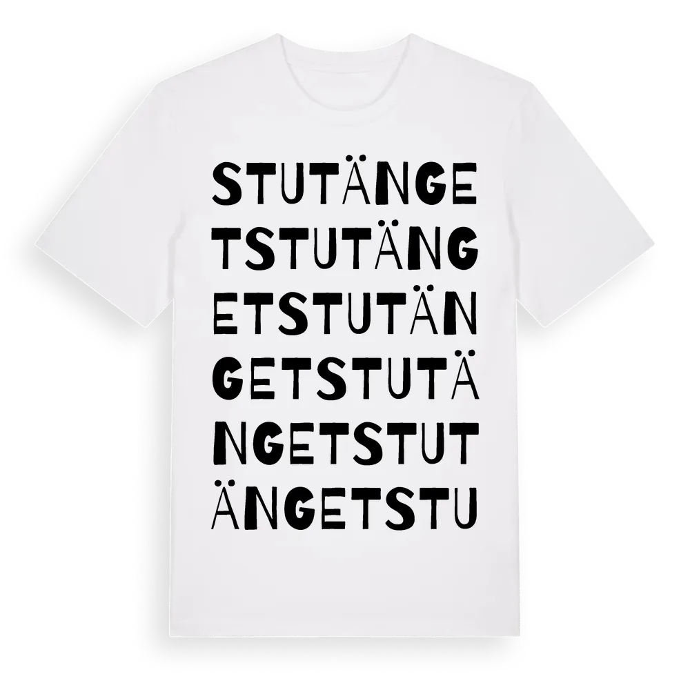 En ordlek byggd på Stutängets namn. Subtilt och klurig – ett motiv som bara de som verkligen känner platsen fullt ut förstår. Premium bomull, unisex – från byn Stutänget i Västmanlands län.