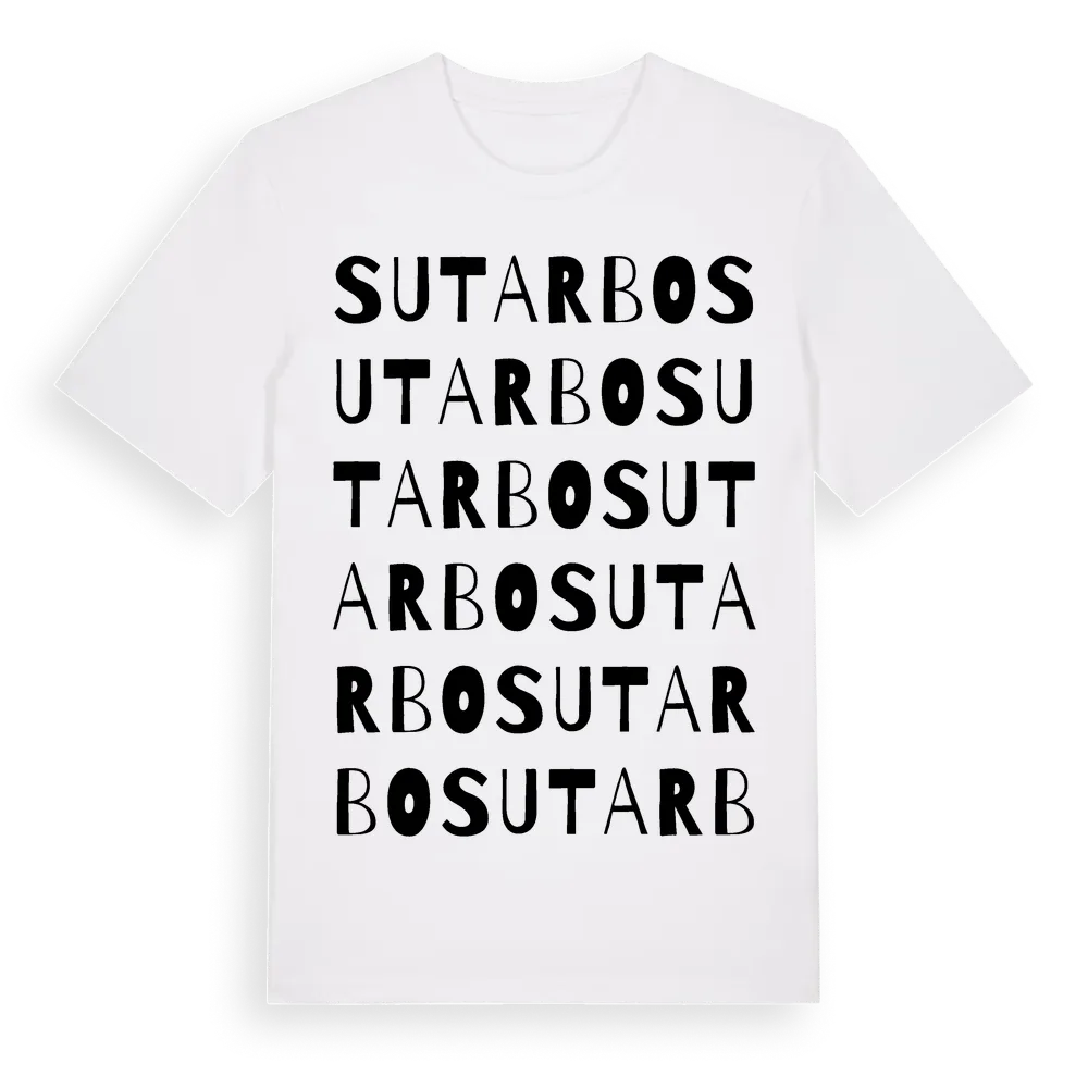 Sutarbo ordlek t-shirt är inspirerad av Sutarbo i Västmanlands län, Sverige. Tröjan är designad för dig som har en speciell koppling till platsen – oavsett om du bor här, har rötterna här eller bara älskar Sutarbo.