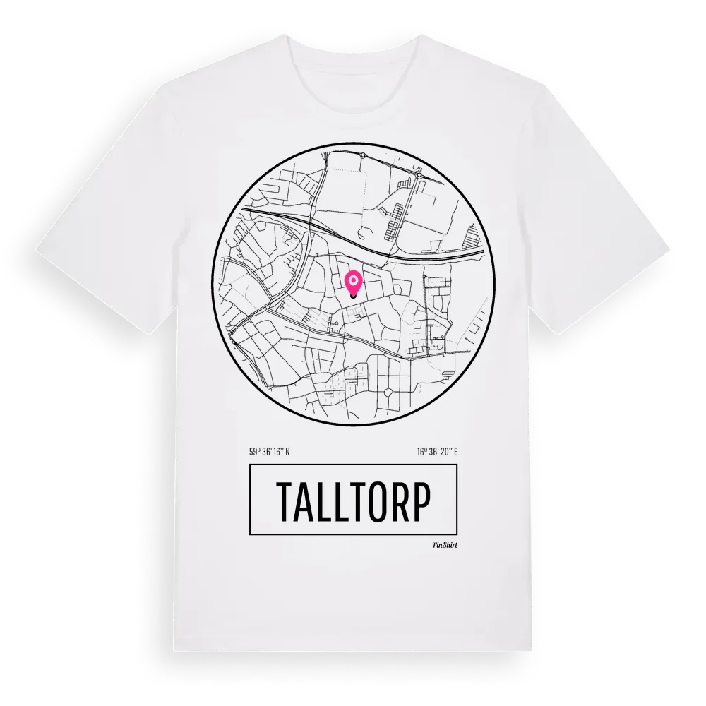 Ett rent, runt tryck med Talltorps namn. Minimalistiskt och stilrent – perfekt för den som känner platsen utan att skrika det. Premium bomull, unisex – från stadsdelen Talltorp i Västmanlands län.
