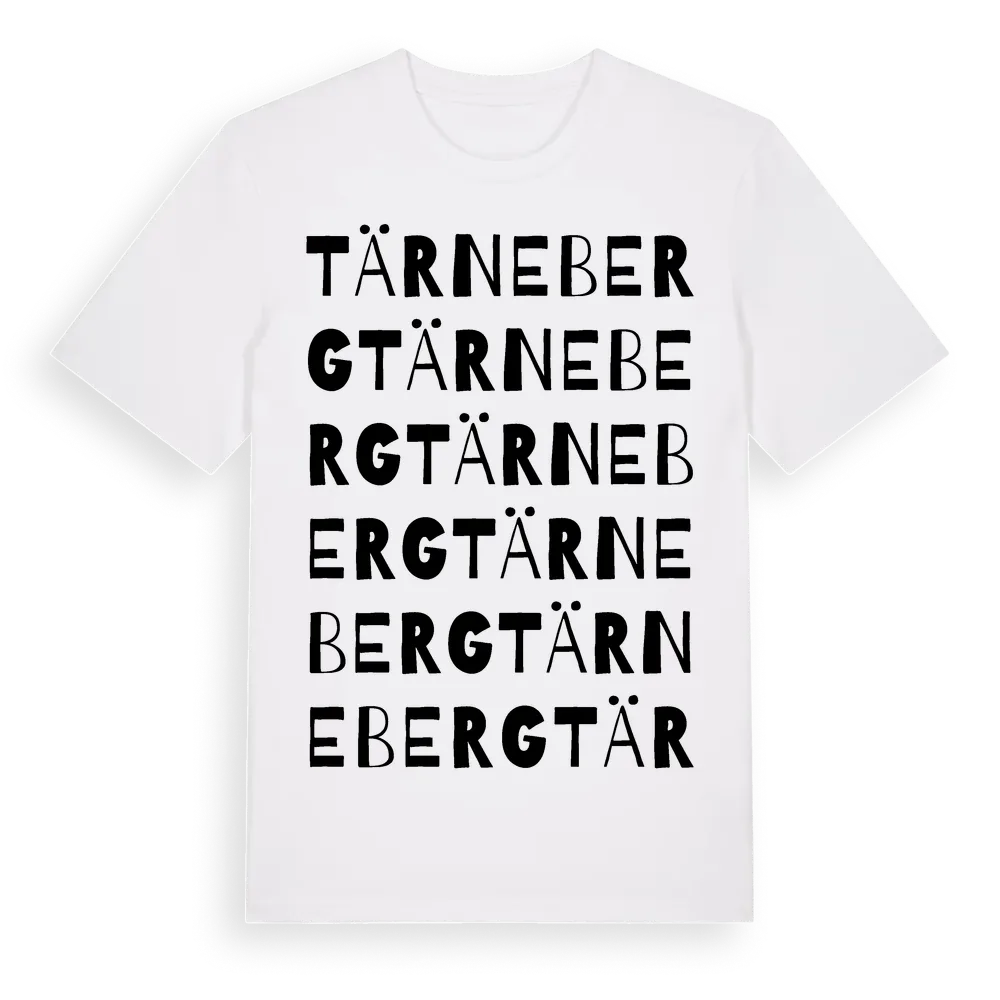 Tärneberg ordlek t-shirt är inspirerad av Tärneberg i Västmanlands län, Sverige. Tröjan är designad för dig som har en speciell koppling till platsen – oavsett om du bor här, har rötterna här eller bara älskar Tärneberg.