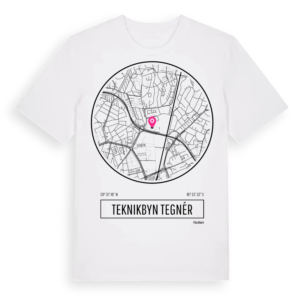 Teknikbyn Tegnér t-shirt är inspirerad av stadsdelen Teknikbyn Tegnér i Västmanlands län, Sverige. Tröjan är designad för dig som har en speciell koppling till platsen – oavsett om du bor här, har rötterna här eller bara älskar Teknikbyn Tegnér.