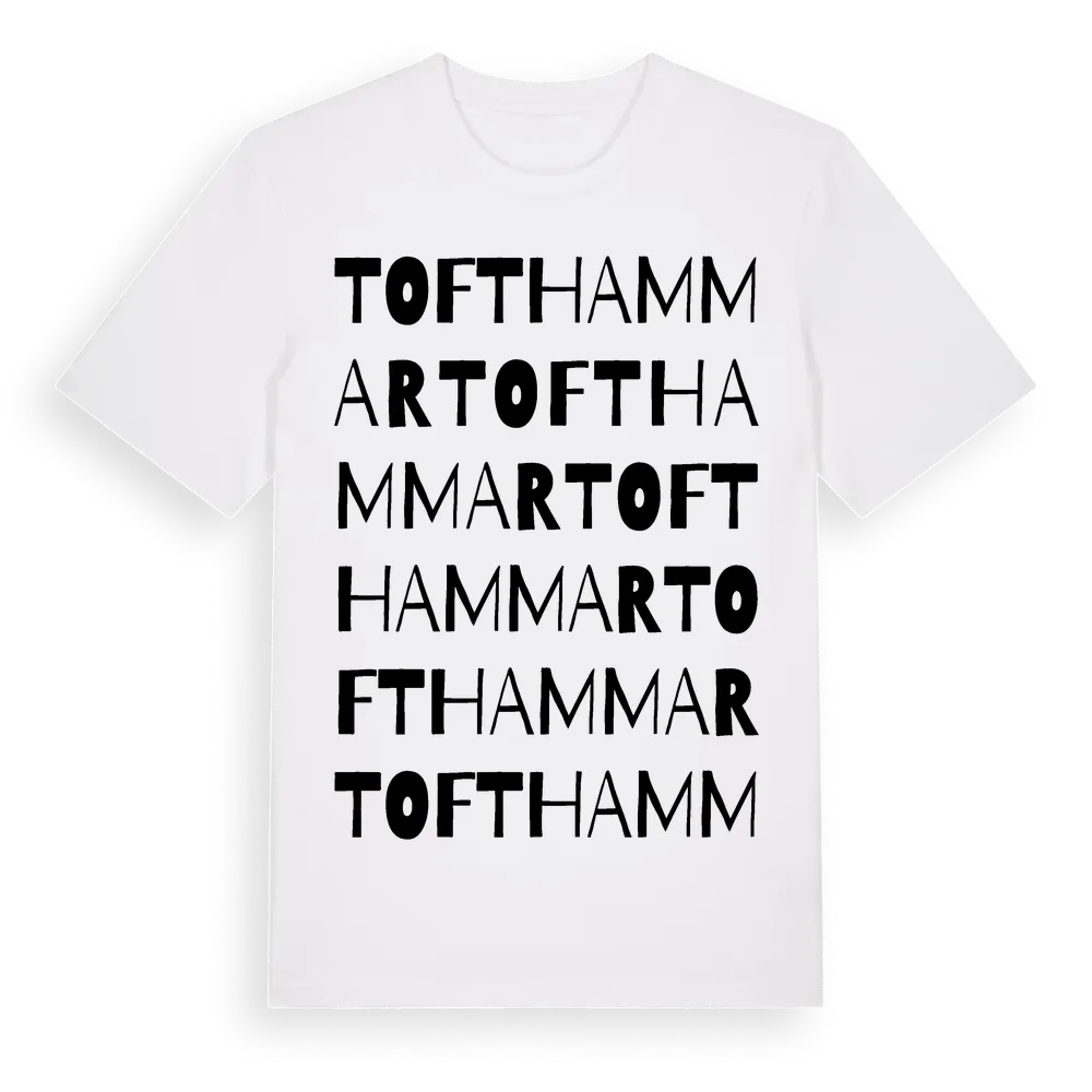 Tofthammar ordlek t-shirt är inspirerad av byn Tofthammar i Västmanlands län, Sverige. Tröjan är designad för dig som har en speciell koppling till platsen – oavsett om du bor här, har rötterna här eller bara älskar Tofthammar.