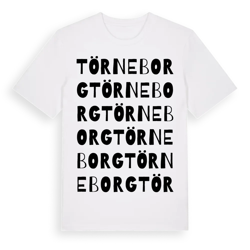 Törneborg ordlek t-shirt är inspirerad av Törneborg i Västmanlands län, Sverige. Tröjan är designad för dig som har en speciell koppling till platsen – oavsett om du bor här, har rötterna här eller bara älskar Törneborg.
