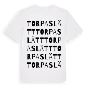 Torpaslätt är en by i Västmanlands län, Sverige. Våra t-shirts med motiv från Torpaslätt är designade för dig som har en speciell koppling till platsen – oavsett om du bor här, har rötterna här eller bara älskar Torpaslätt.