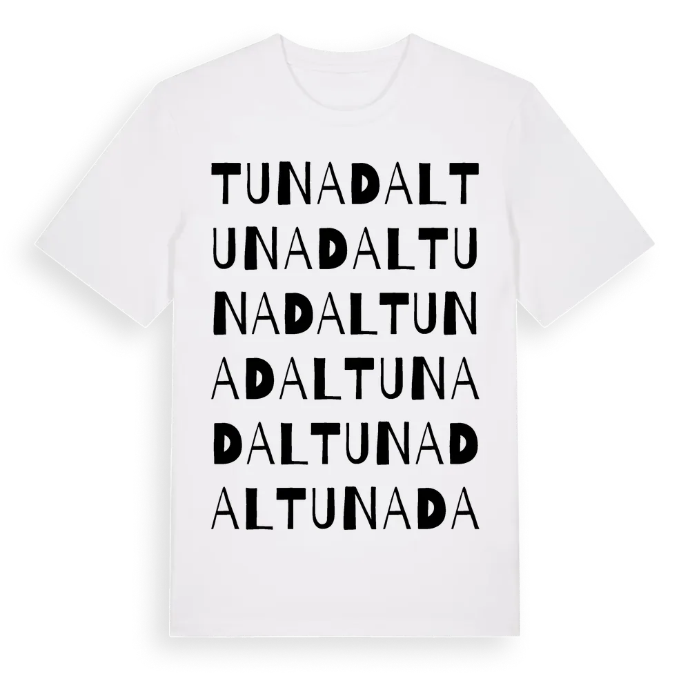 Tunadal ordlek t-shirt är inspirerad av stadsdelen Tunadal i Västmanlands län, Sverige. Tröjan är designad för dig som har en speciell koppling till platsen – oavsett om du bor här, har rötterna här eller bara älskar Tunadal.
