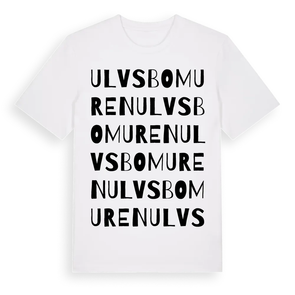 Ulvsbomuren ordlek t-shirt är inspirerad av byn Ulvsbomuren i Västmanlands län, Sverige. Tröjan är designad för dig som har en speciell koppling till platsen – oavsett om du bor här, har rötterna här eller bara älskar Ulvsbomuren.
