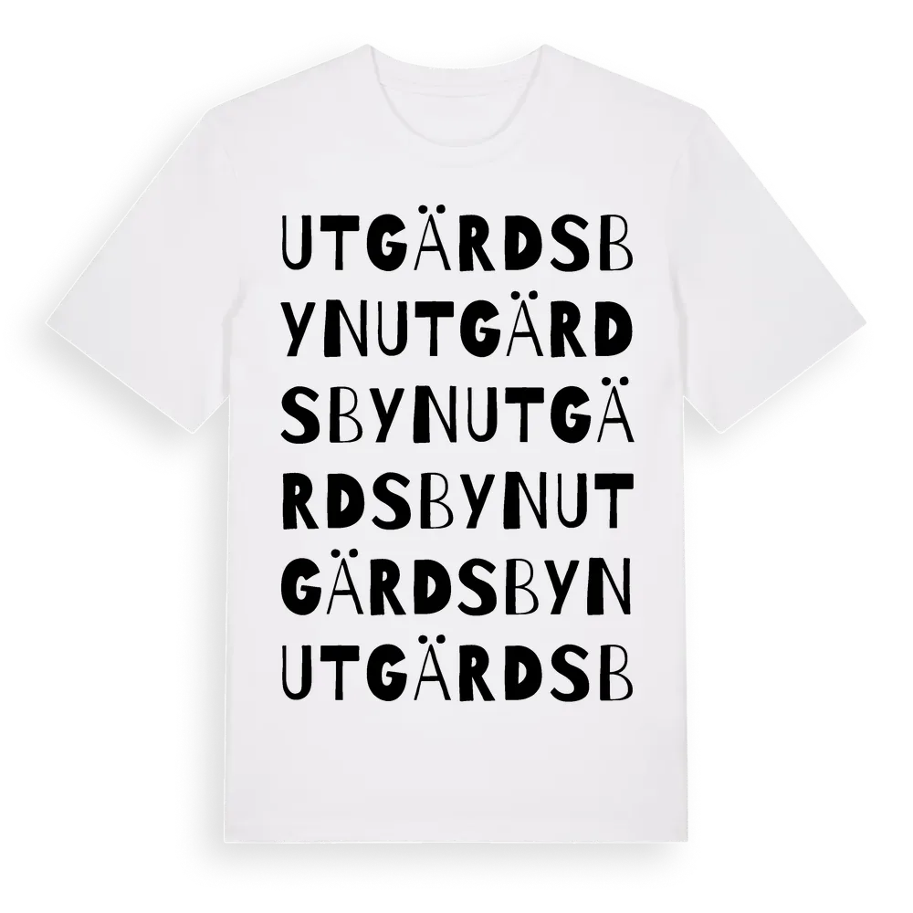 Utgärdsbyn ordlek t-shirt är inspirerad av byn Utgärdsbyn i Västmanlands län, Sverige. Tröjan är designad för dig som har en speciell koppling till platsen – oavsett om du bor här, har rötterna här eller bara älskar Utgärdsbyn.