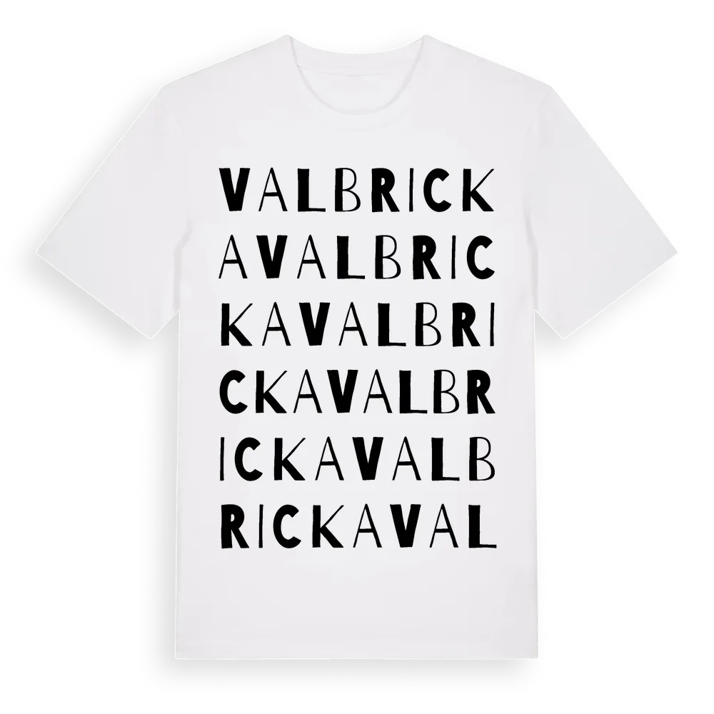Valbricka ordlek t-shirt är inspirerad av byn Valbricka i Västmanlands län, Sverige. Tröjan är designad för dig som har en speciell koppling till platsen – oavsett om du bor här, har rötterna här eller bara älskar Valbricka.