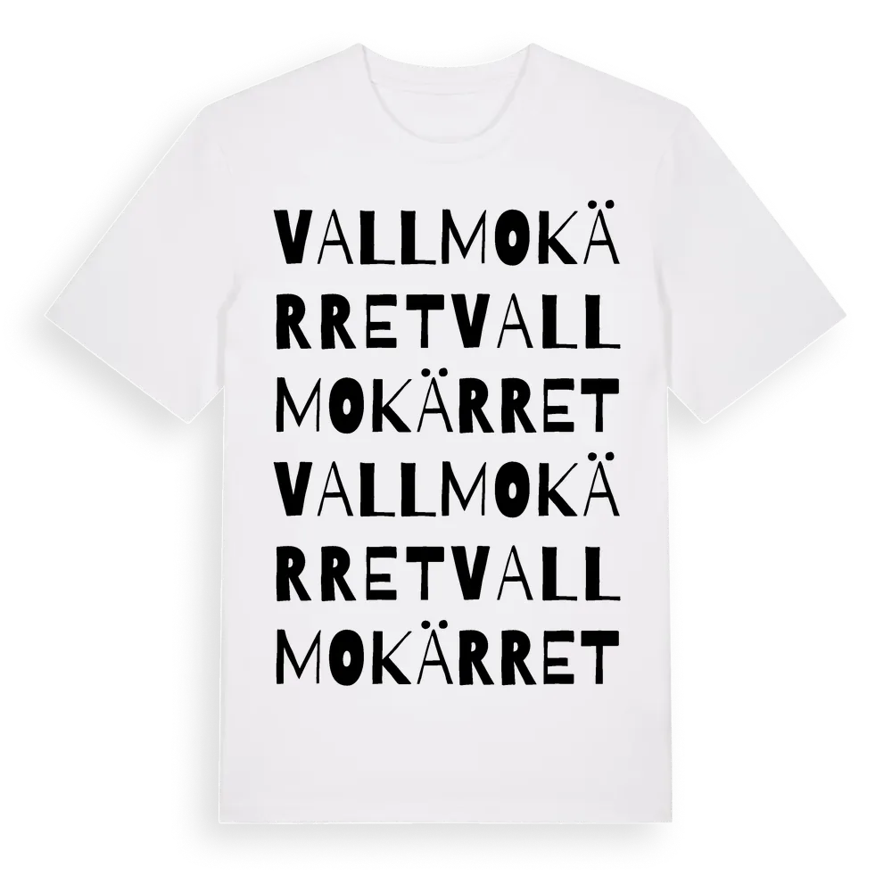 Vallmokärret ordlek t-shirt är inspirerad av Vallmokärret i Västmanlands län, Sverige. Tröjan är designad för dig som har en speciell koppling till platsen – oavsett om du bor här, har rötterna här eller bara älskar Vallmokärret.