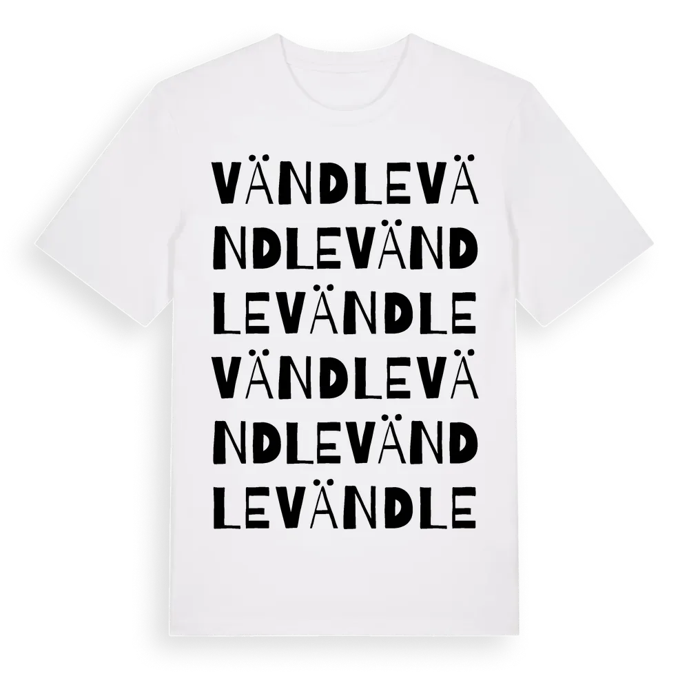 Vändle ordlek t-shirt är inspirerad av byn Vändle i Västmanlands län, Sverige. Tröjan är designad för dig som har en speciell koppling till platsen – oavsett om du bor här, har rötterna här eller bara älskar Vändle.