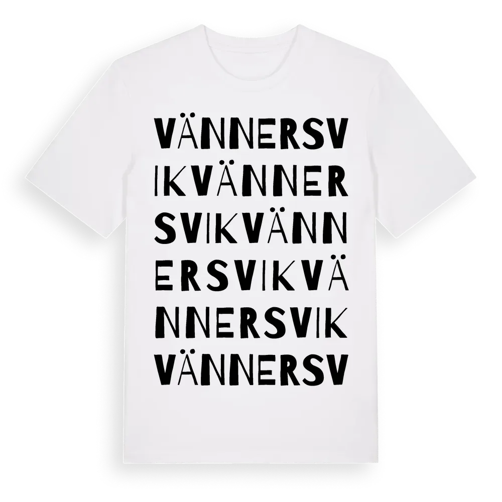 Vännersvik ordlek t-shirt är inspirerad av byn Vännersvik i Västmanlands län, Sverige. Tröjan är designad för dig som har en speciell koppling till platsen – oavsett om du bor här, har rötterna här eller bara älskar Vännersvik.