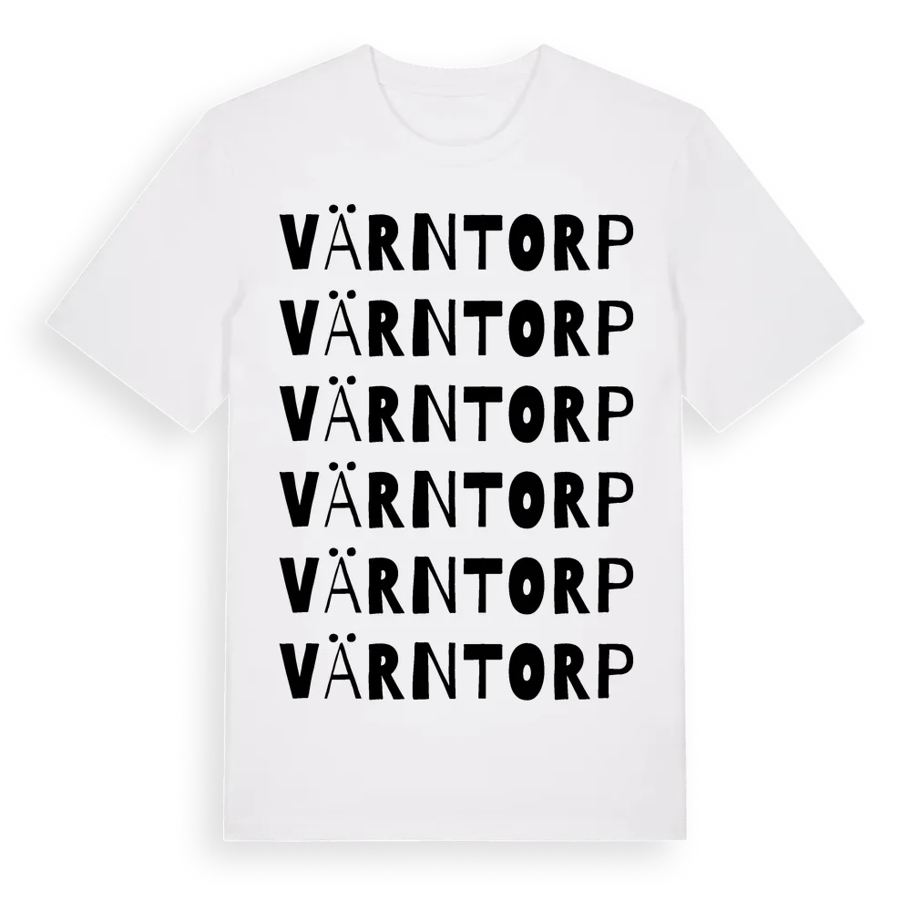 En ordlek byggd på Värntorps namn. Subtilt och klurig – ett motiv som bara de som verkligen känner platsen fullt ut förstår. Premium bomull, unisex – från byn Värntorp i Västmanlands län.