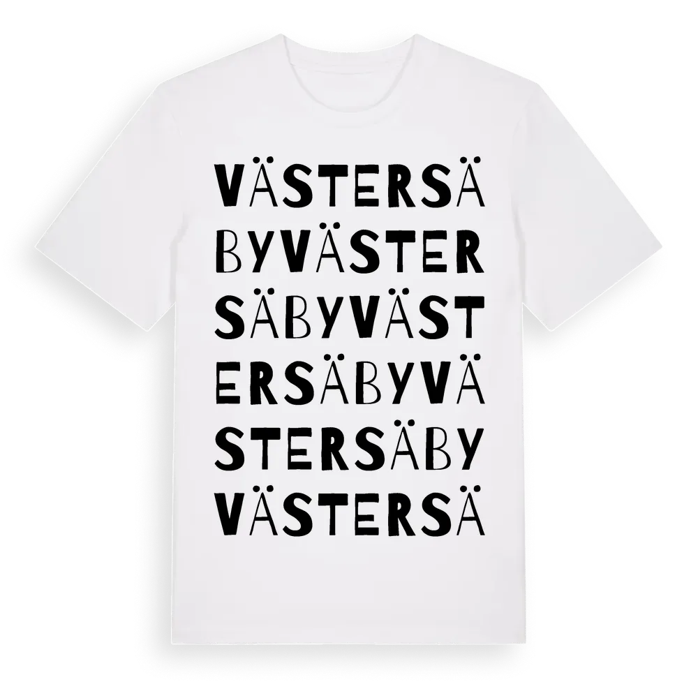 Väster Säby ordlek t-shirt är inspirerad av byn Väster Säby i Västmanlands län, Sverige. Tröjan är designad för dig som har en speciell koppling till platsen – oavsett om du bor här, har rötterna här eller bara älskar Väster Säby.