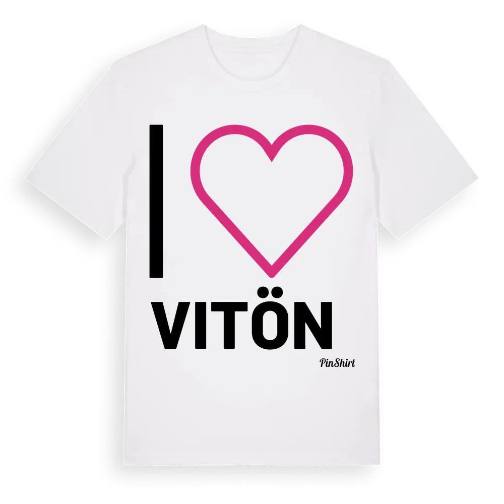 Det klassiska "I ❤ Vitön"-motivet i stort format som täcker hela bröstet. För dig som vill visa kärleken till Vitön på riktigt. Premium bomull, unisex – från byn Vitön i Västmanlands län.
