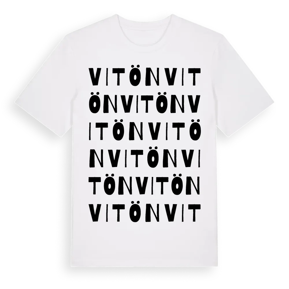 Vitön ordlek t-shirt är inspirerad av byn Vitön i Västmanlands län, Sverige. Tröjan är designad för dig som har en speciell koppling till platsen – oavsett om du bor här, har rötterna här eller bara älskar Vitön.