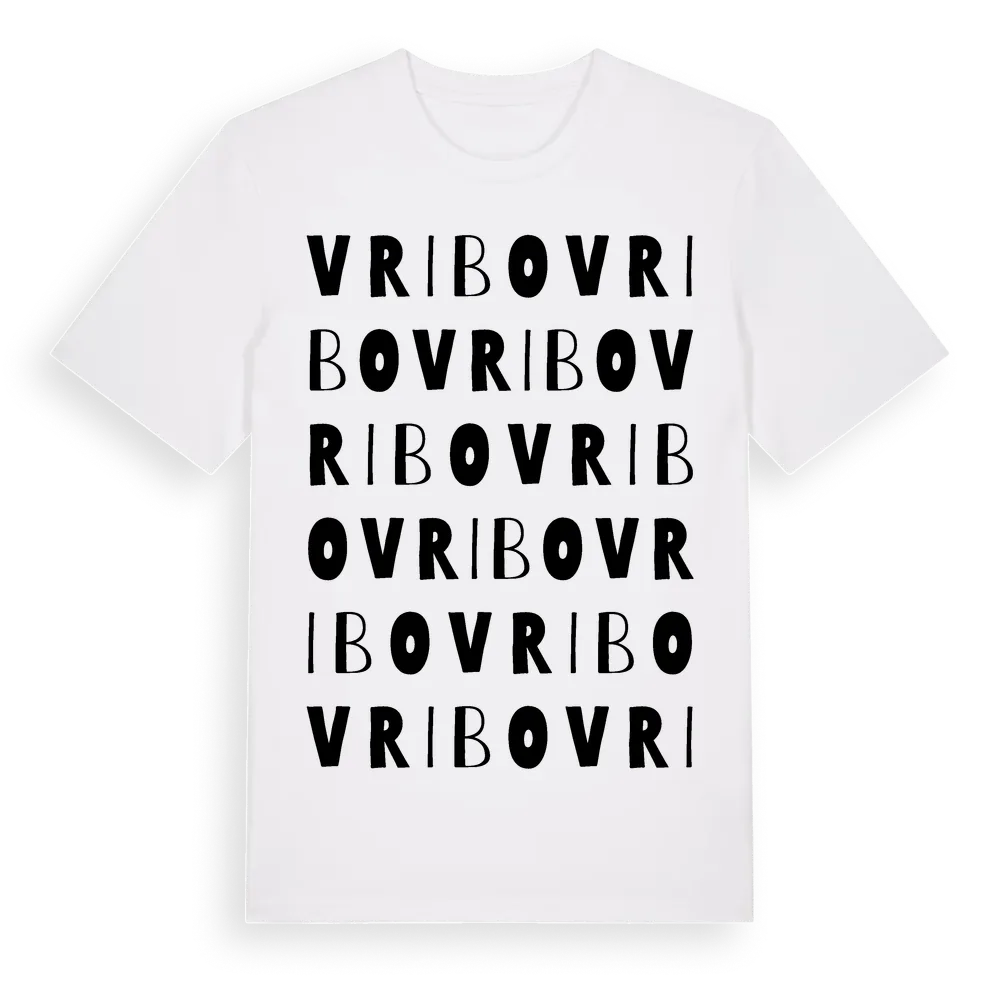 Vribo ordlek t-shirt är inspirerad av byn Vribo i Västmanlands län, Sverige. Tröjan är designad för dig som har en speciell koppling till platsen – oavsett om du bor här, har rötterna här eller bara älskar Vribo.