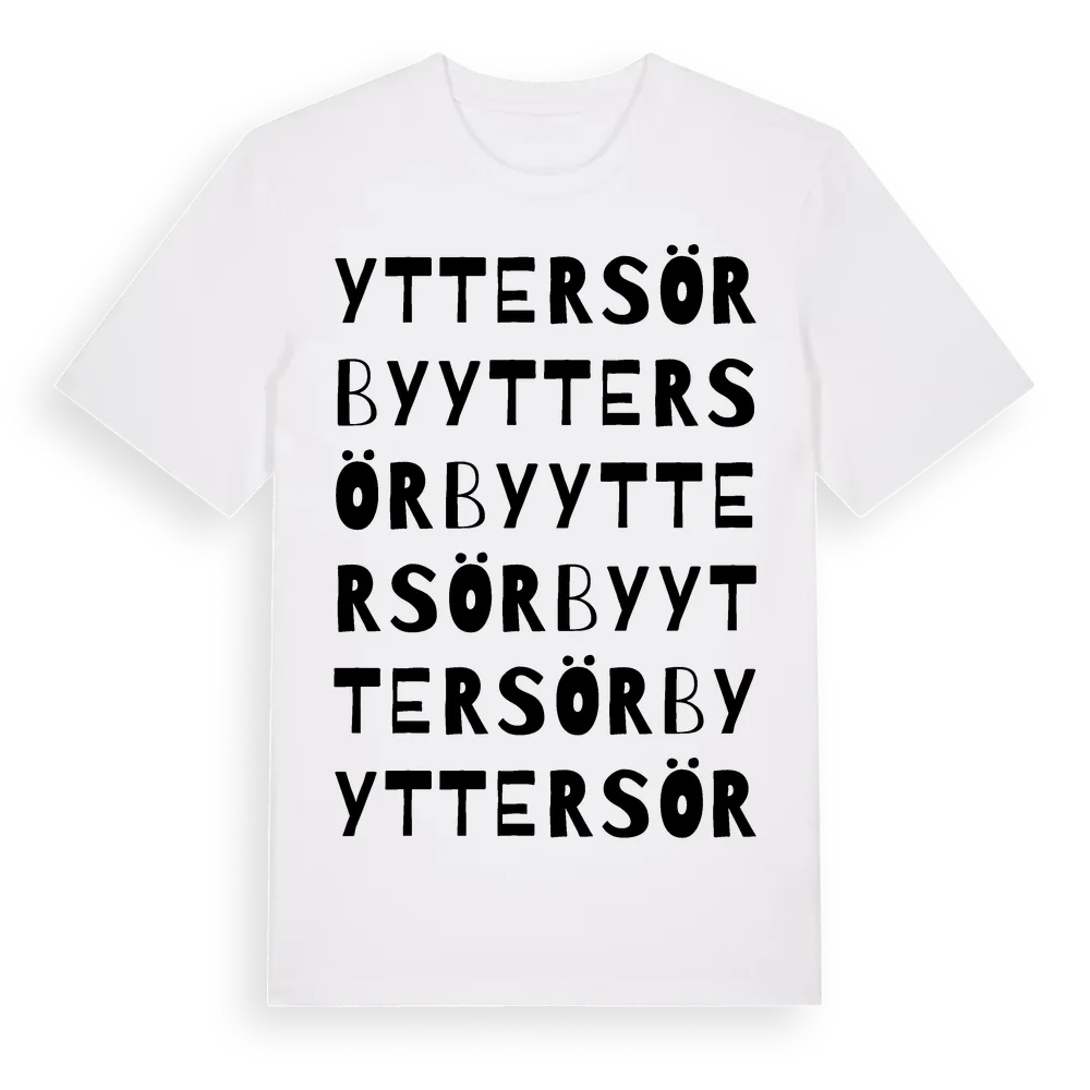 Yttersörby ordlek t-shirt är inspirerad av Yttersörby i Västmanlands län, Sverige. Tröjan är designad för dig som har en speciell koppling till platsen – oavsett om du bor här, har rötterna här eller bara älskar Yttersörby.