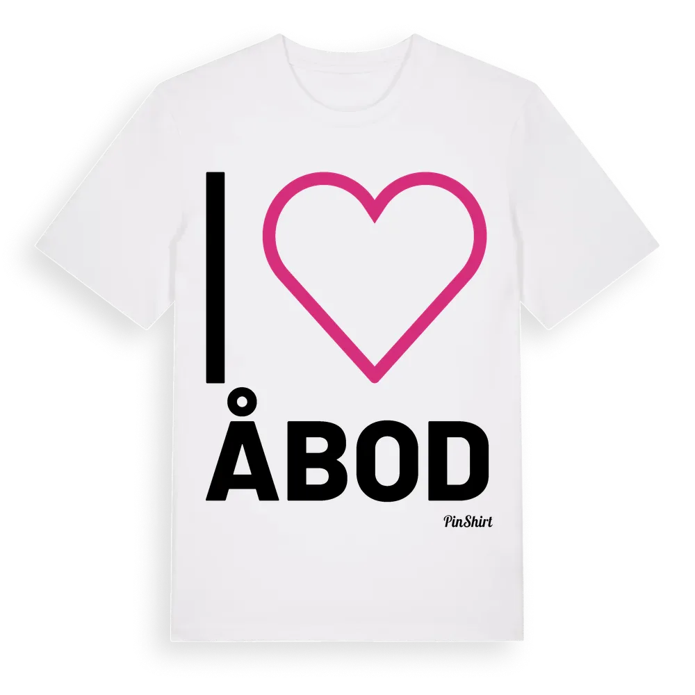 Det klassiska "I ❤ Åbod"-motivet i stort format som täcker hela bröstet. För dig som vill visa kärleken till Åbod på riktigt. Premium bomull, unisex – från byn Åbod i Västra Götalands län.