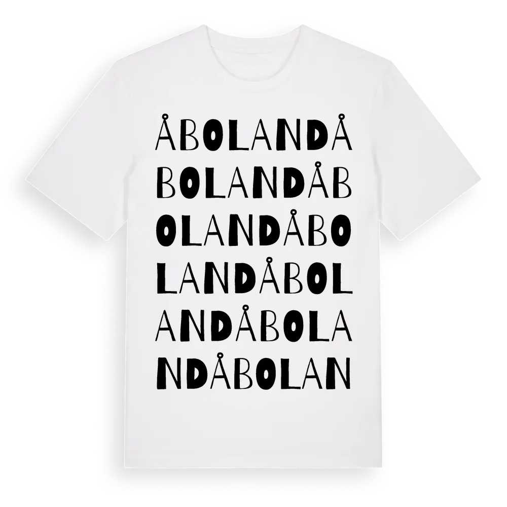 Åboland ordlek t-shirt är inspirerad av byn Åboland i Västra Götalands län, Sverige. Tröjan är designad för dig som har en speciell koppling till platsen – oavsett om du bor här, har rötterna här eller bara älskar Åboland.