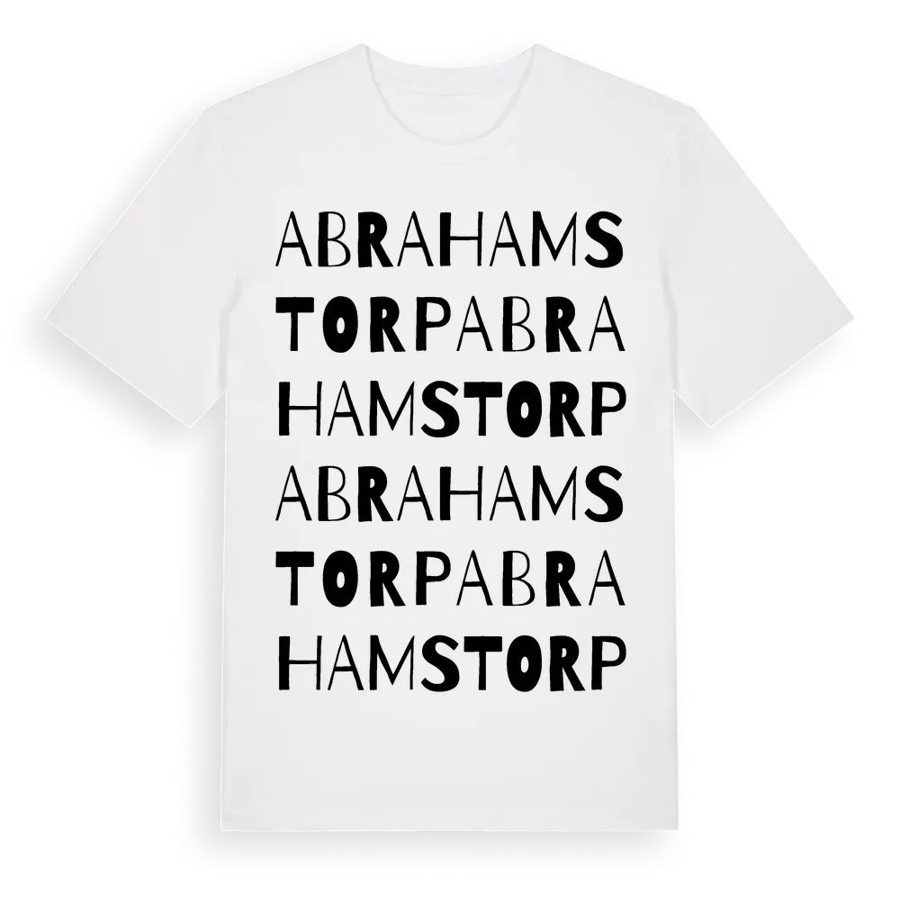 Abrahamstorp ordlek t-shirt är inspirerad av Abrahamstorp i Västra Götalands län, Sverige. Tröjan är designad för dig som har en speciell koppling till platsen – oavsett om du bor här, har rötterna här eller bara älskar Abrahamstorp.