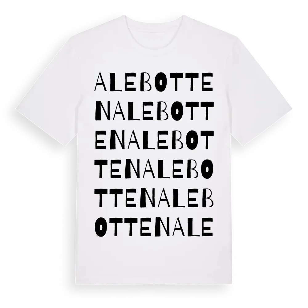 En ordlek byggd på Alebottens namn. Subtilt och klurig – ett motiv som bara de som verkligen känner platsen fullt ut förstår. Premium bomull, unisex – från Alebotten i Västra Götalands län.