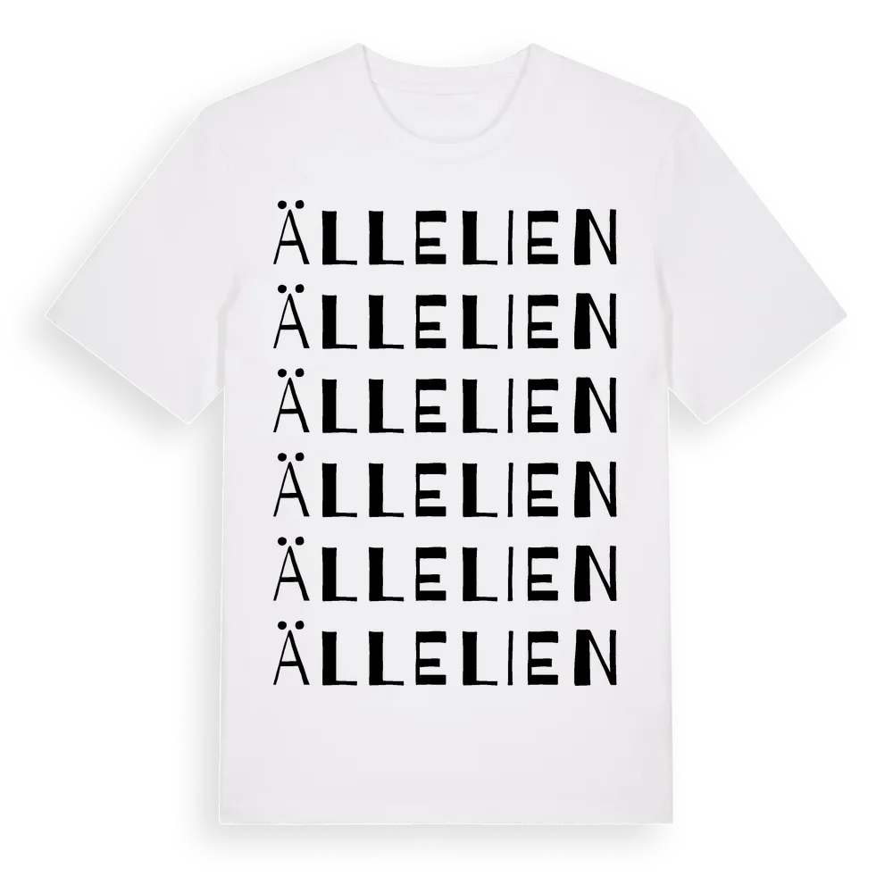 Ällelien ordlek t-shirt är inspirerad av byn Ällelien i Västra Götalands län, Sverige. Tröjan är designad för dig som har en speciell koppling till platsen – oavsett om du bor här, har rötterna här eller bara älskar Ällelien.