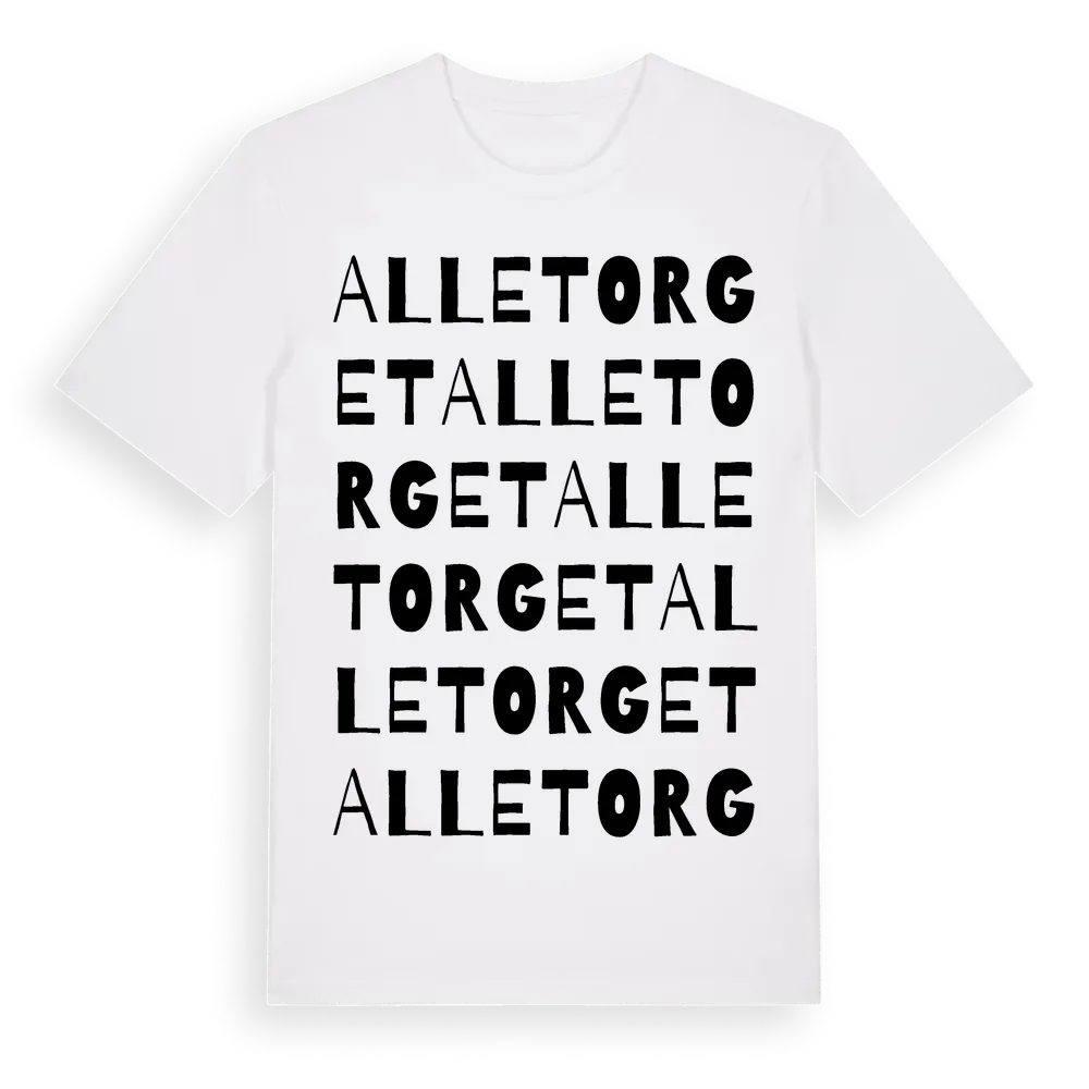 En ordlek byggd på Alletorgets namn. Subtilt och klurig – ett motiv som bara de som verkligen känner platsen fullt ut förstår. Premium bomull, unisex – från Alletorget i Västra Götalands län.