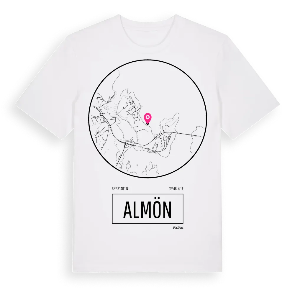Almön t-shirt är inspirerad av ön Almön i Västra Götalands län, Sverige. Tröjan är designad för dig som har en speciell koppling till platsen – oavsett om du bor här, har rötterna här eller bara älskar Almön.