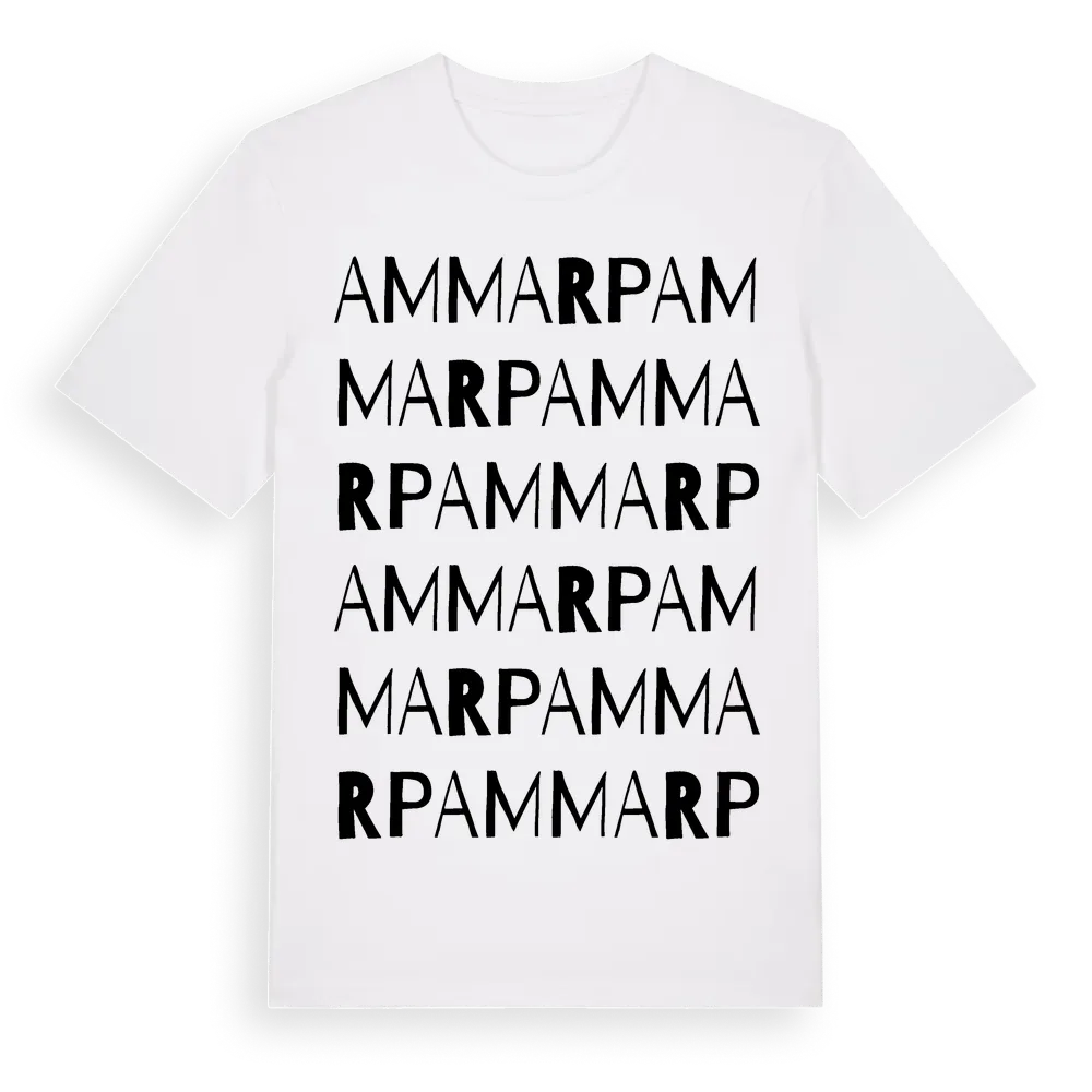 Ammarp ordlek t-shirt är inspirerad av byn Ammarp i Västra Götalands län, Sverige. Tröjan är designad för dig som har en speciell koppling till platsen – oavsett om du bor här, har rötterna här eller bara älskar Ammarp.