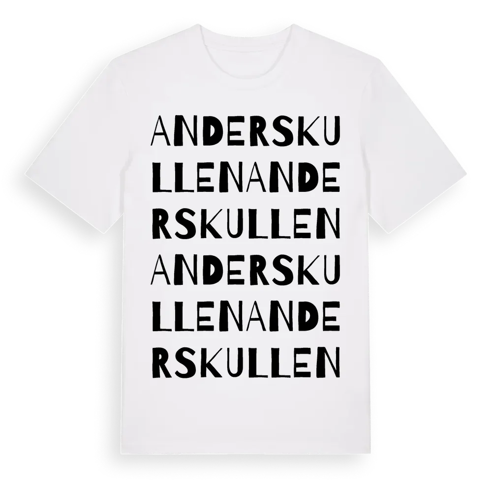 Anderskullen ordlek t-shirt är inspirerad av Anderskullen i Västra Götalands län, Sverige. Tröjan är designad för dig som har en speciell koppling till platsen – oavsett om du bor här, har rötterna här eller bara älskar Anderskullen.